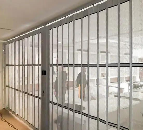 Photos of the FlexiGlide Vision Air sliding security shutters Camden Art Centre
