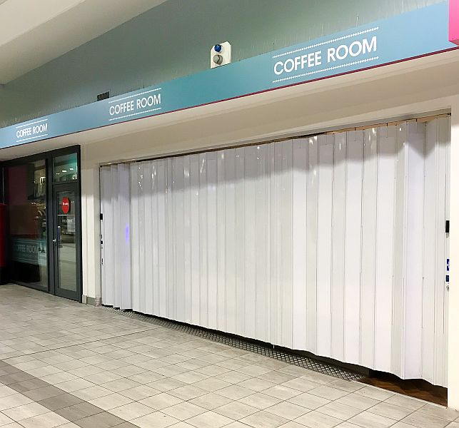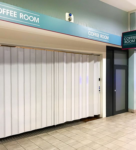 Sliding shutter installation Coffee Room Bristol Bus Station