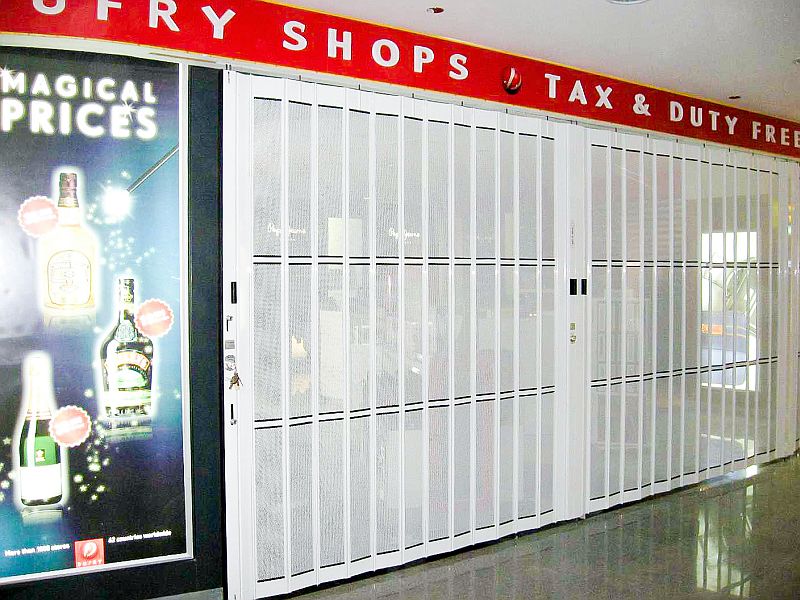 Below are photos of the sliding shutters in place at Alexandria's international airport.