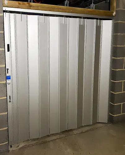 Constructed from 152mm wide by 1.83mm thick full height aluminium panels, framed by full height butt hinges at 178mm centres.
